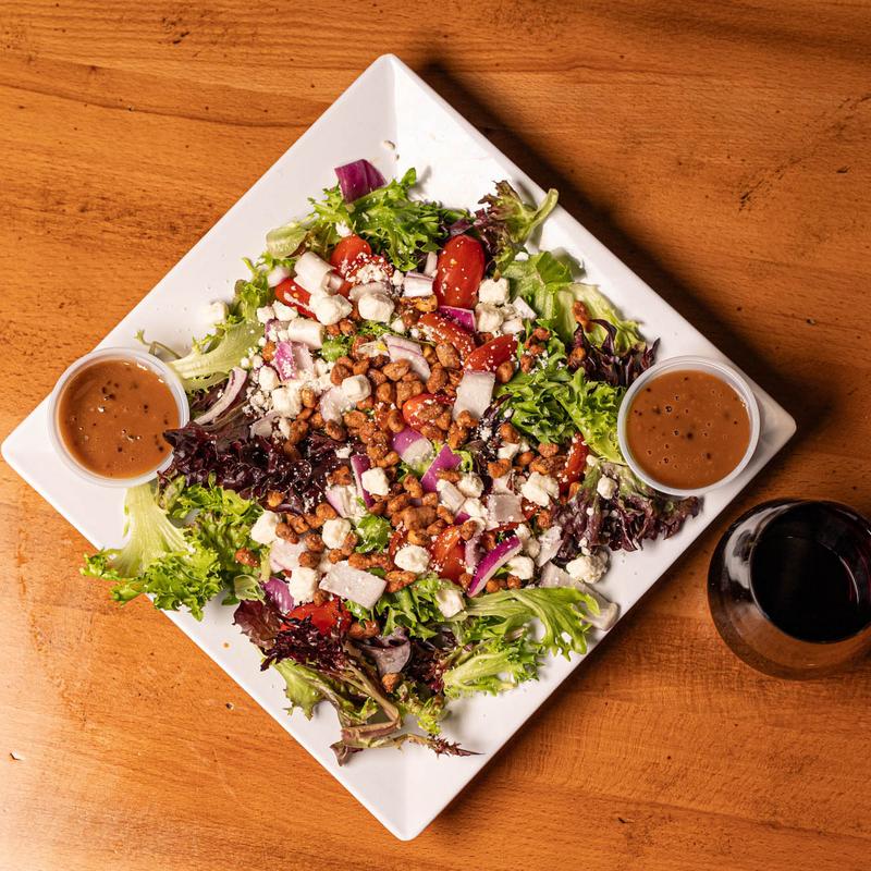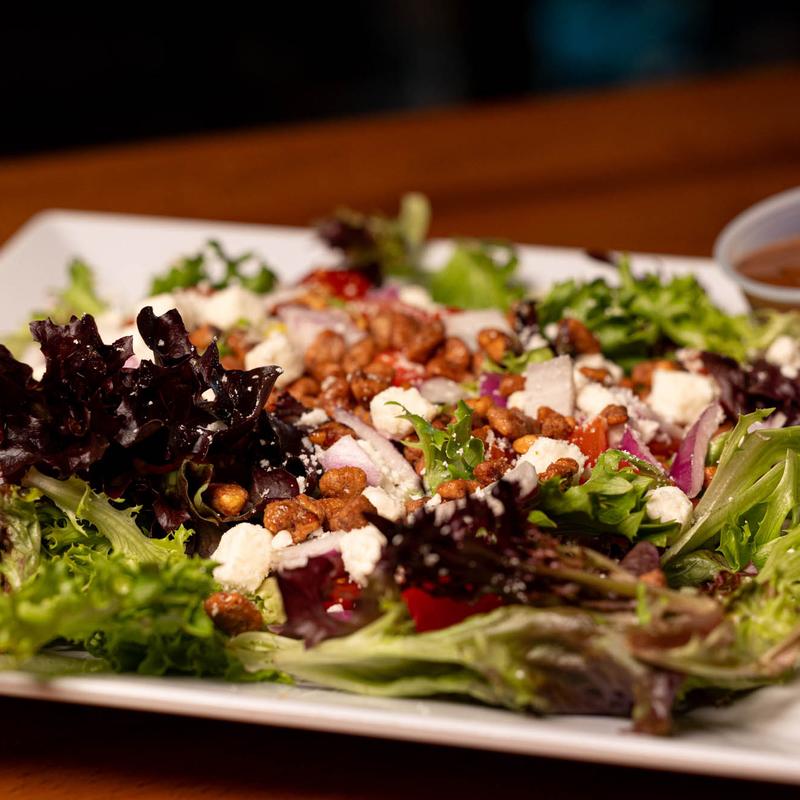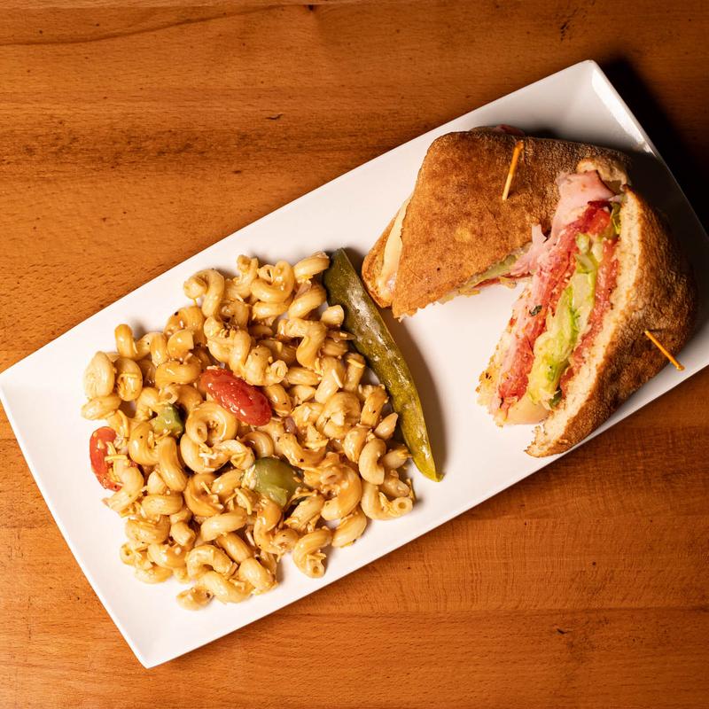 Wide variety of food from pizza, sandwiches, salads and more. We had the pork wings , Riverwalk Salad and Conway club with pasta salad. Everything was yummy good!! Service was quick and efficient.