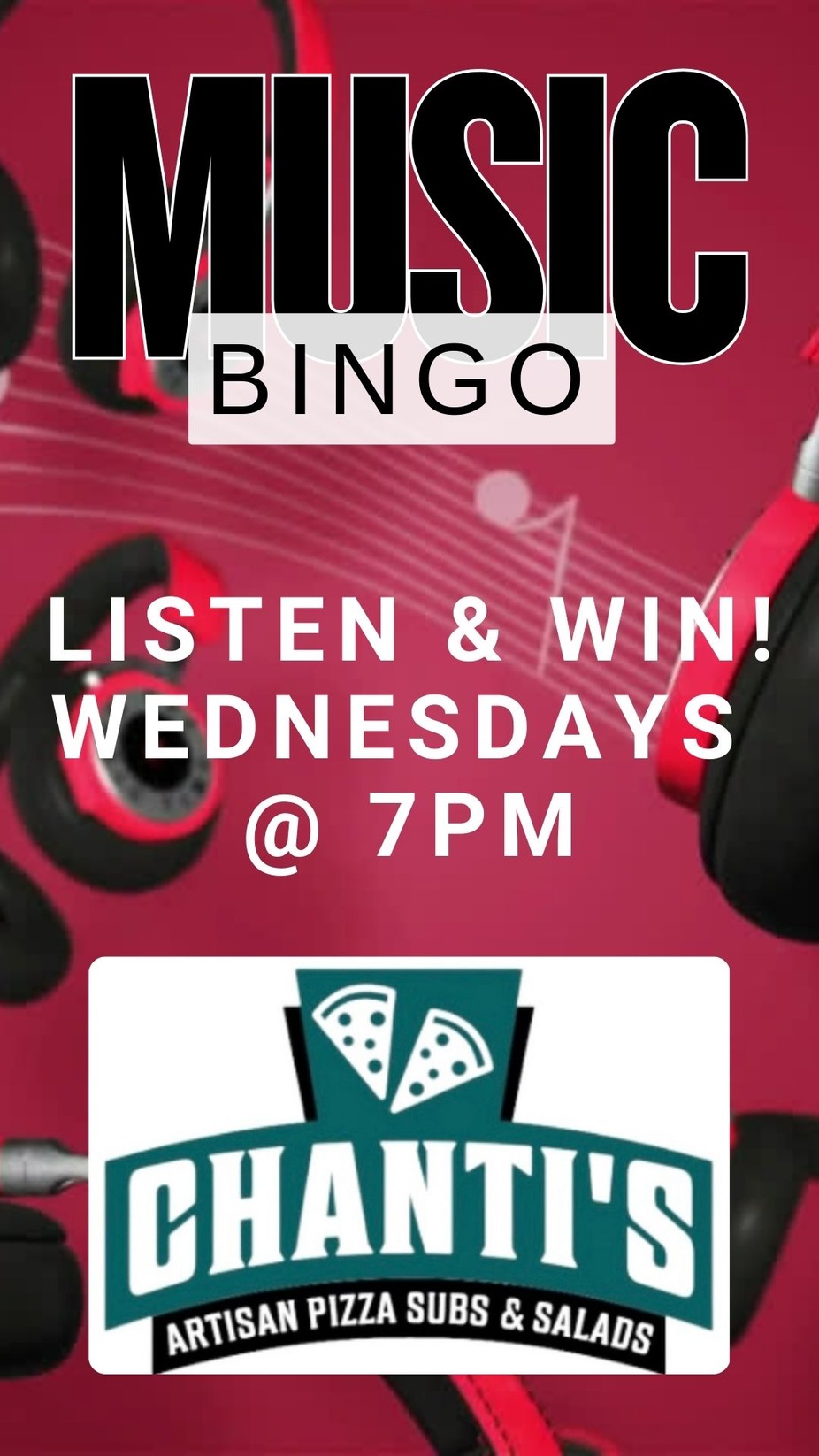Join us every Wednesday at 7:00pm for Music Bingo! Listen to win with your favorite tunes while enjoying a deliciously cheesy pizza and one of our specialty drinks.