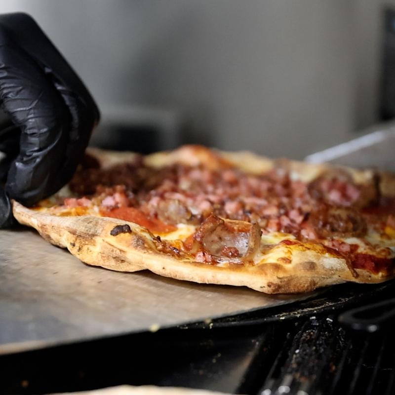 Great pizza! Stopped for a late lunch around 2p.m. and sat right down. Lots of tables were available. The building has lots of character and in a beautiful setting near downtown.